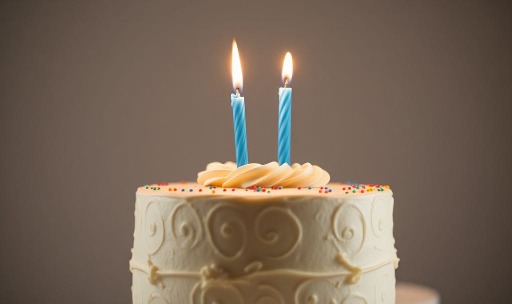 Yesterday was the second year anniversary of this octogenarian’s substack postings. I had forgotten the actual date tho I knew it was on the horizon. This is one of the very best things I have done for myself. It’s been a rewarding creative outlet and more importantly, I have made authentic connections with people I would not have met otherwise, none of them ‘around the corner’. It’s an occasion for cake!